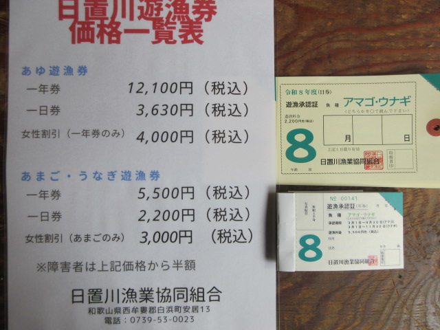 晴れています、4.5度、やや減水濁り無、アマゴ、ウナギ今シーズンの遊漁券届きました、よきシーズンになりますように。 合掌 |