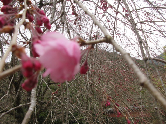 曇天です、9.0度、平水濁り無し、庭先の枝垂れ桜裂きだしました。 合掌 |