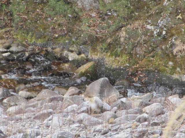 小雪が舞っています、0.0度、20センチ減水濁り無し。 合掌 |